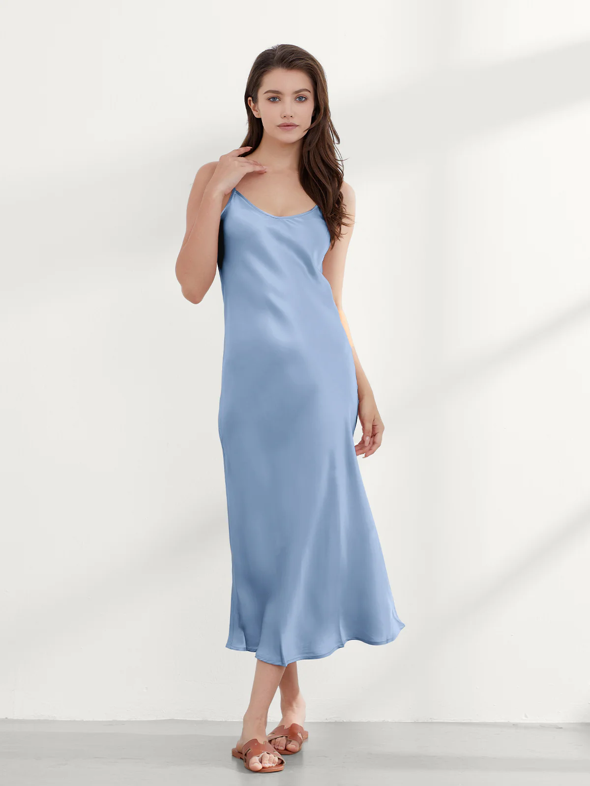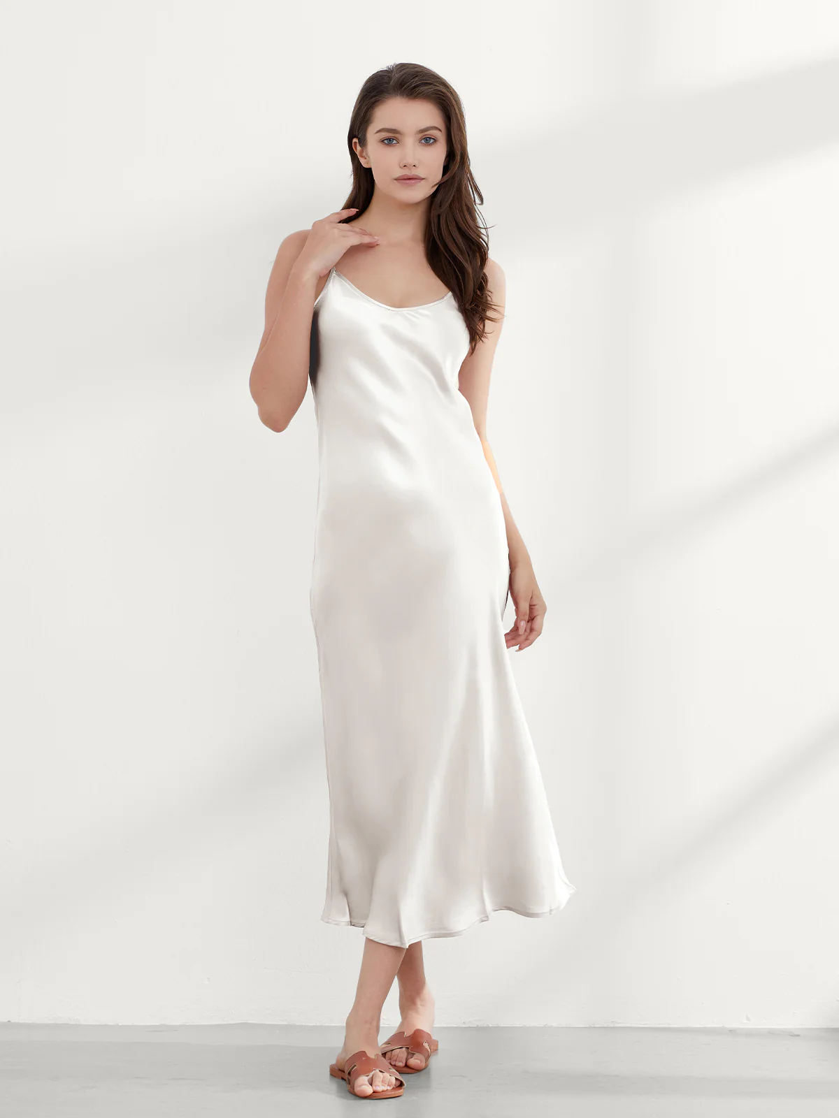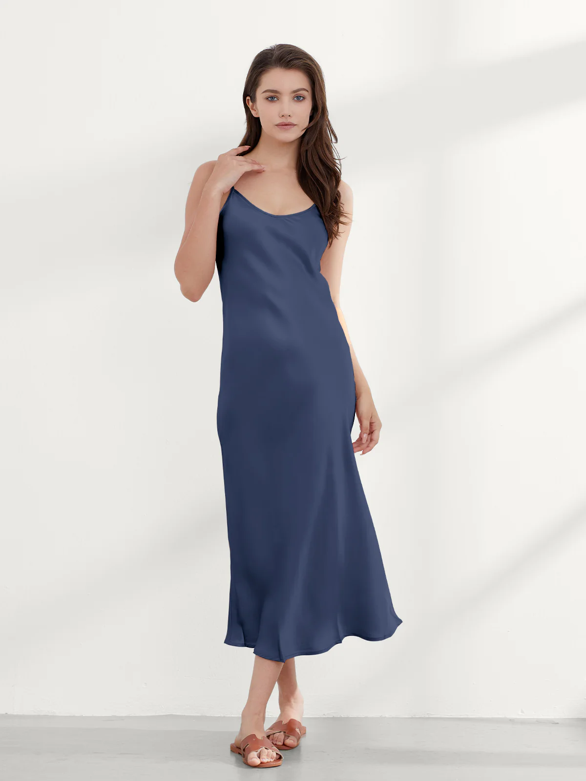 Imagine yourself wearing this high-end silk nightgown and enjoying a luxurious night’s sleep in its cozy effect at night, and pairing it with a sweater or blazer during the day for a stylish and sensible look.