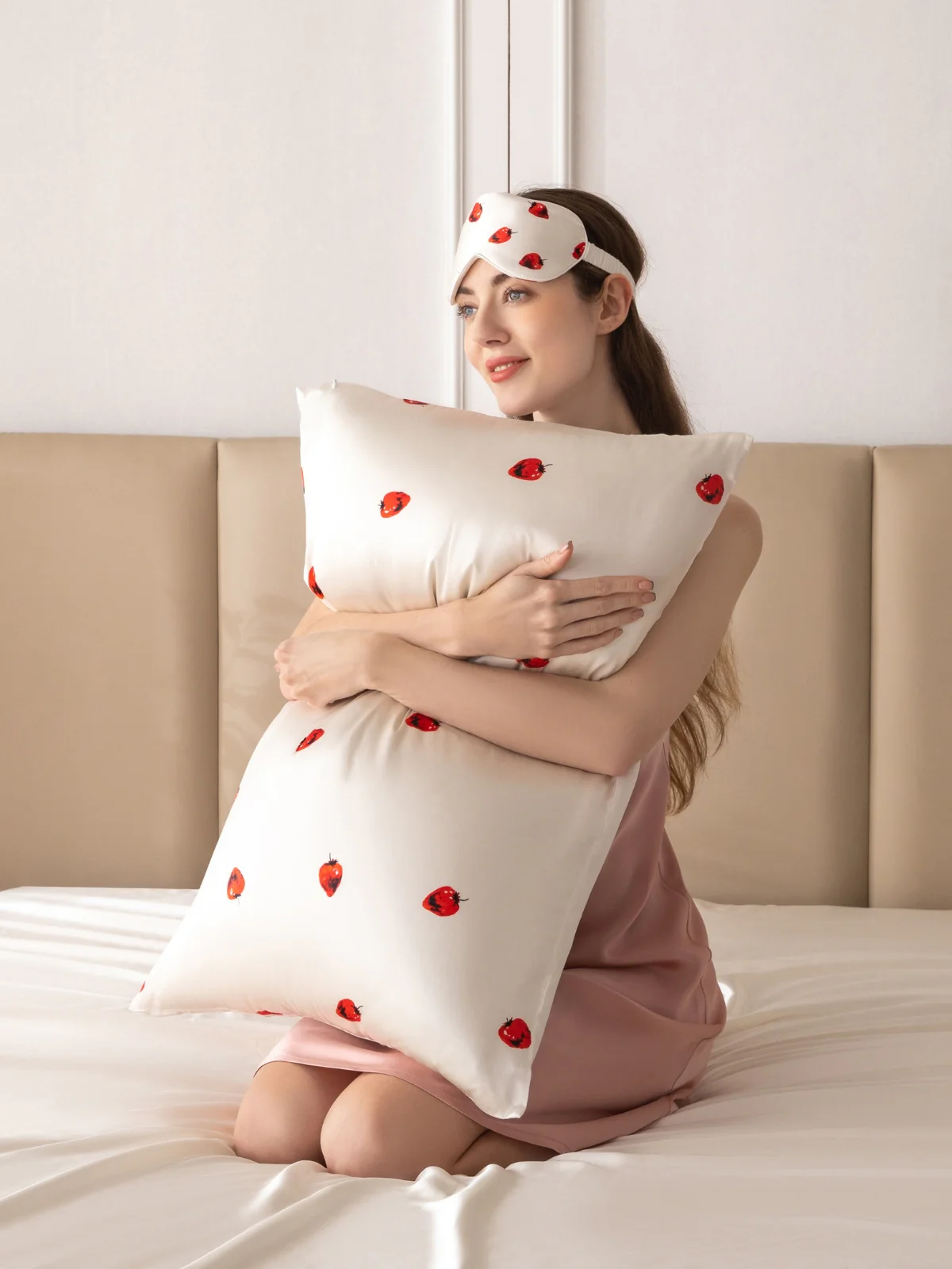 19 Momme Strawberry Silk Pillowcase With Eye Mask Set