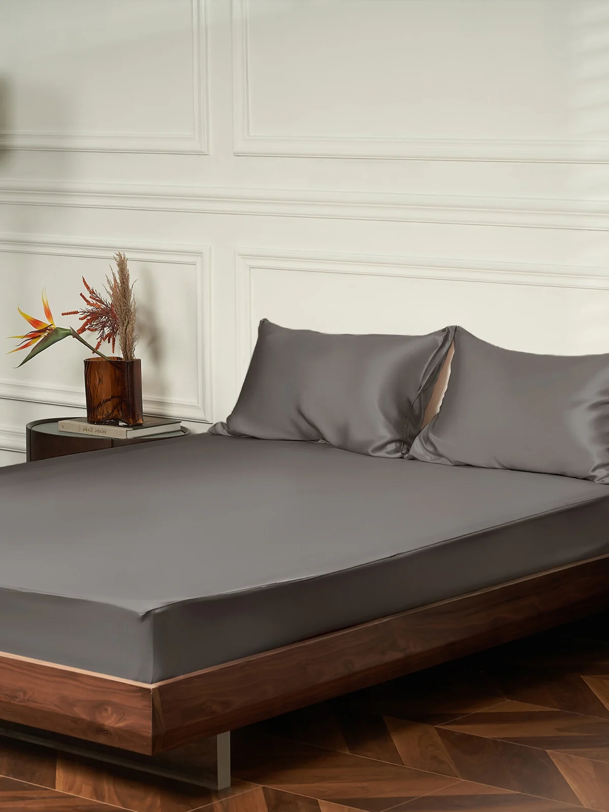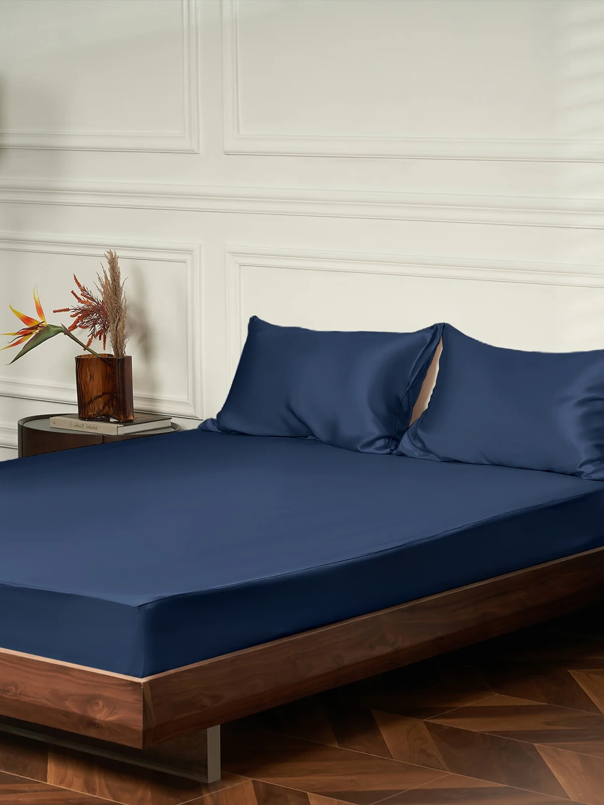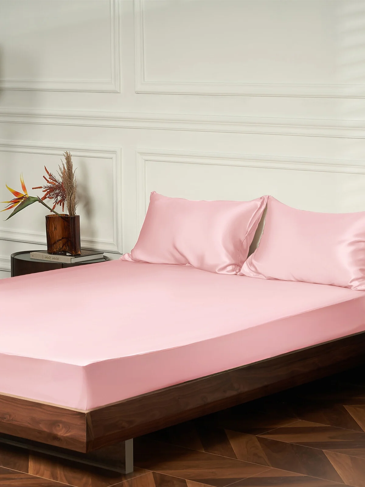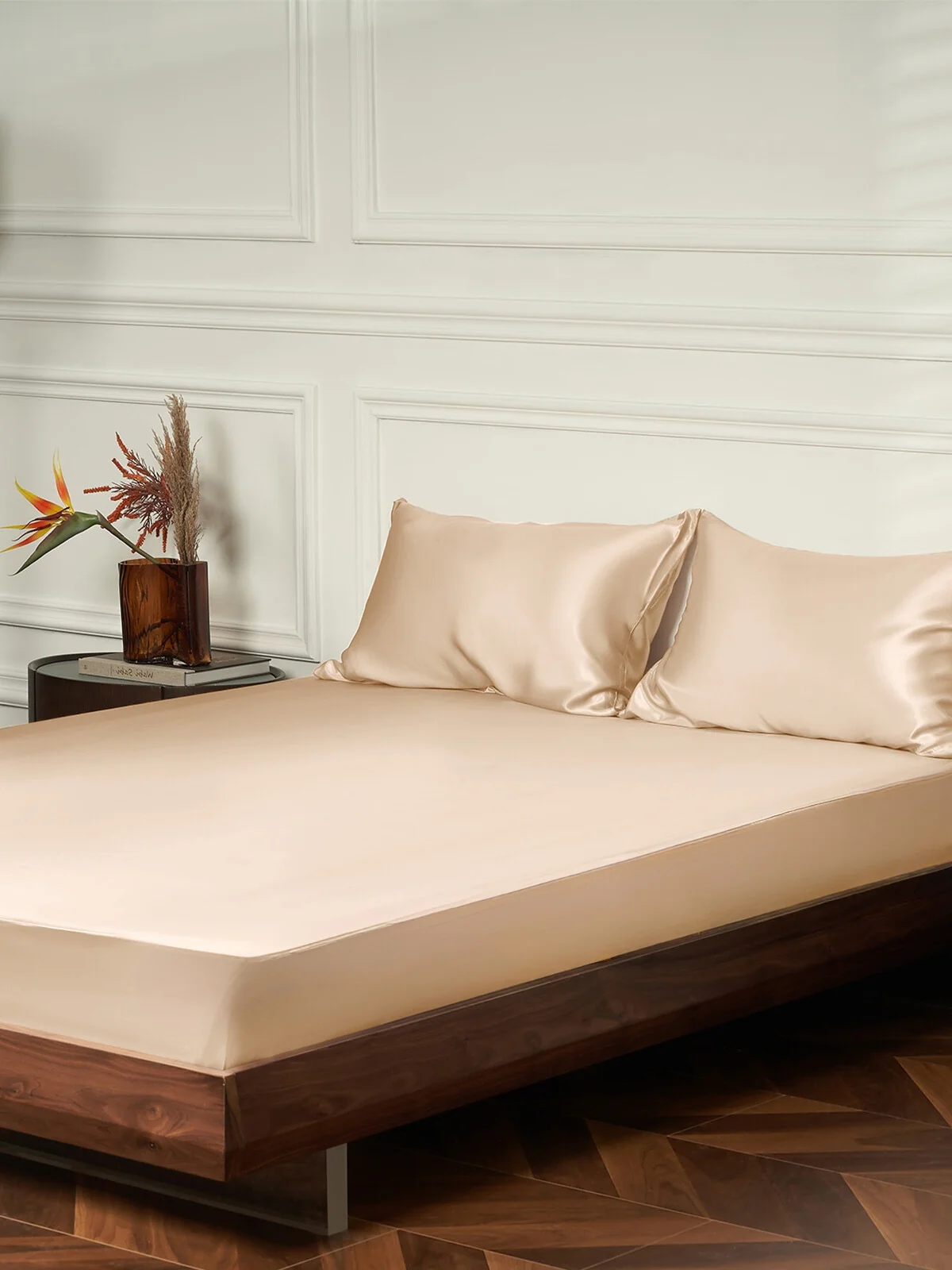 Made from premium 25 momme silk, the sheets feel smooth and weightless against your skin, while the subtle sheen adds a jewel-like elegance to your bedroom. The fitted sheet features a secure elastic band design that hugs your mattress without slipping, and the set includes two matching silk pillowcases—perfect for couples or as a timeless gift.