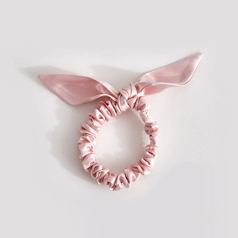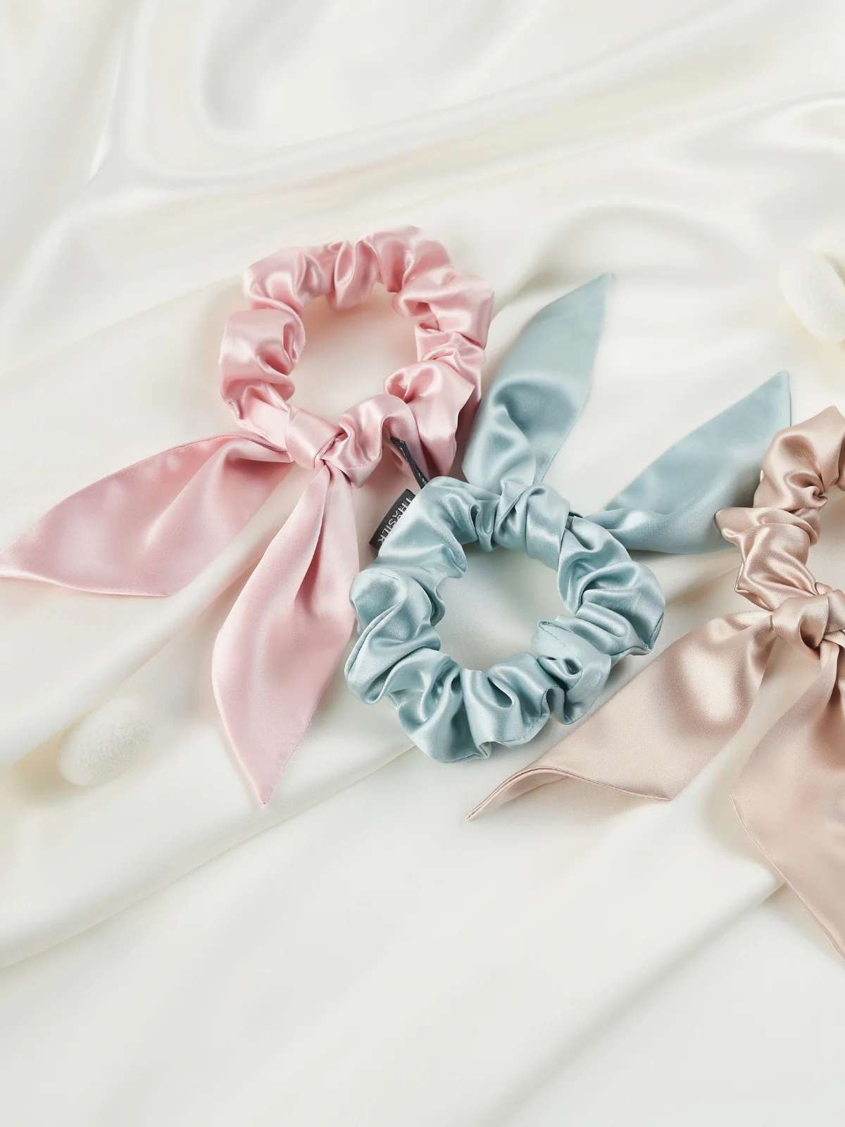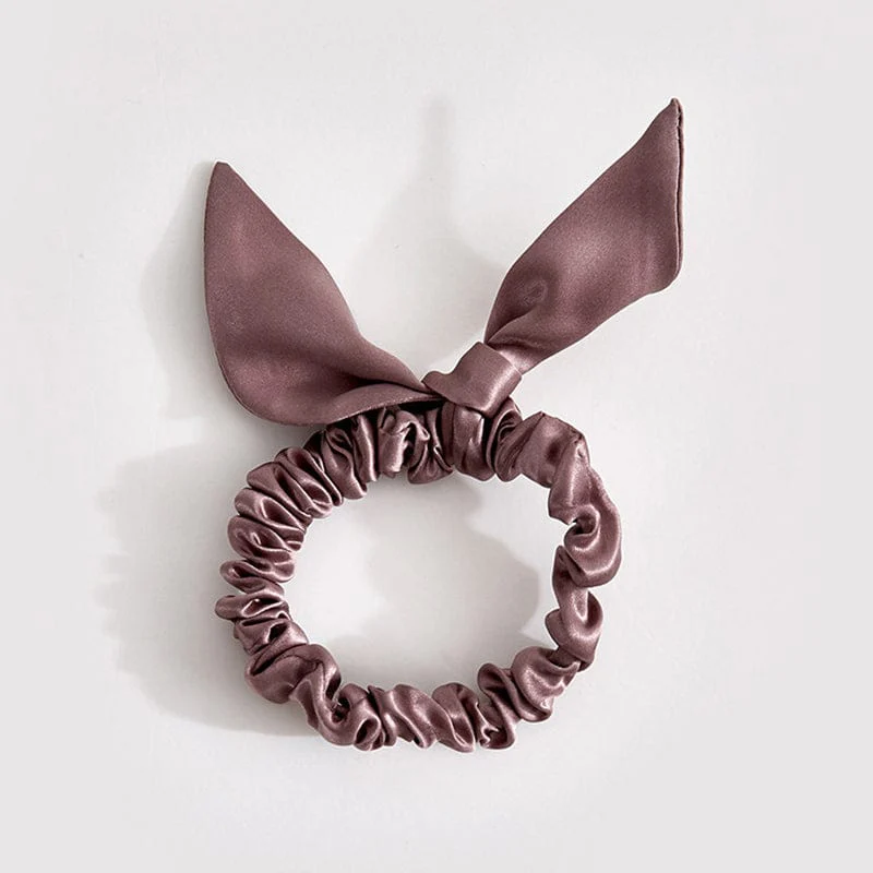 Silk Scrunchie is hand made from sumptuous 100% mulberry silk,. There are 12 colours available. It features a pretty bow tie for added drama and detail.
