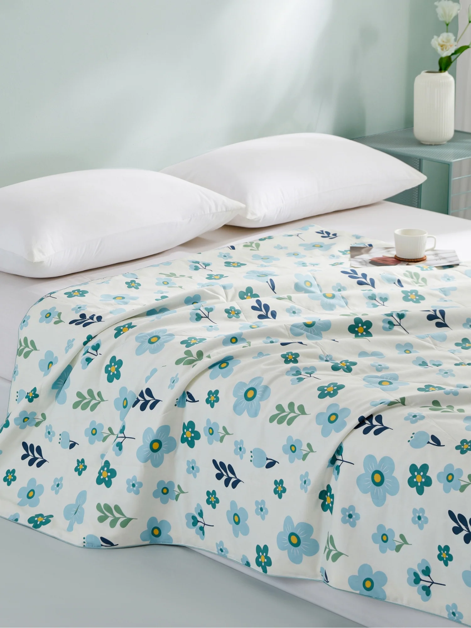 Summer Washable Silk Cooling Blanket with Flower Pattern